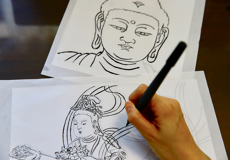 仏様の顔を描くように写す『写仏体験』。丁寧な線描に集中する時間が終わる頃には、さまざまな気づきが心の中に芽生えているかもしれません。