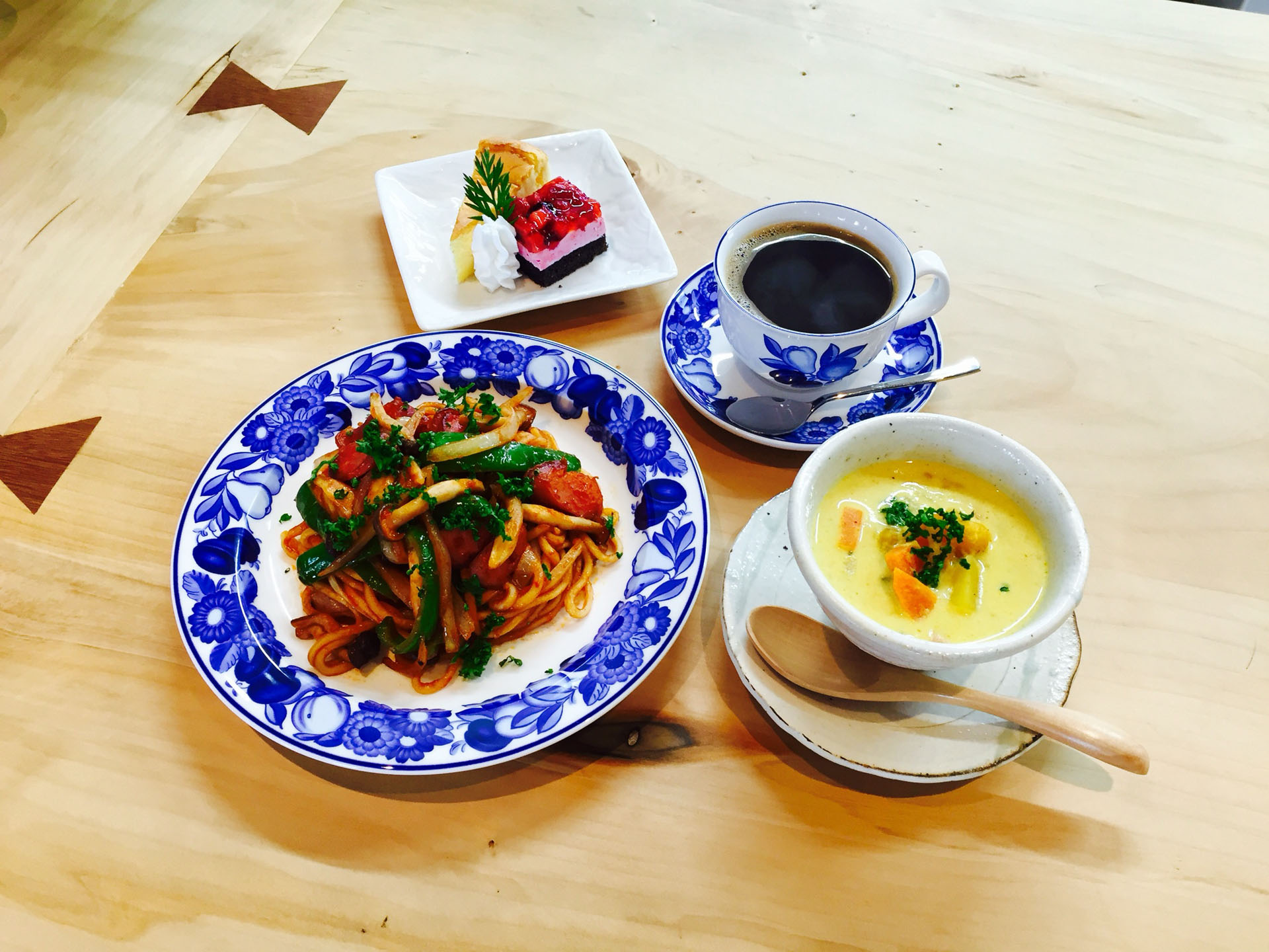 お昼のお得なランチは、パリッと焼かれた麺とシャキシャキもやしの「焼きそば」や愛情たっぷり「ナポリタン」、「特製サンド」の中から一品選んでいただき、サラダ・スープ・デザート・ドリンクがついて1,000円(税込)です。