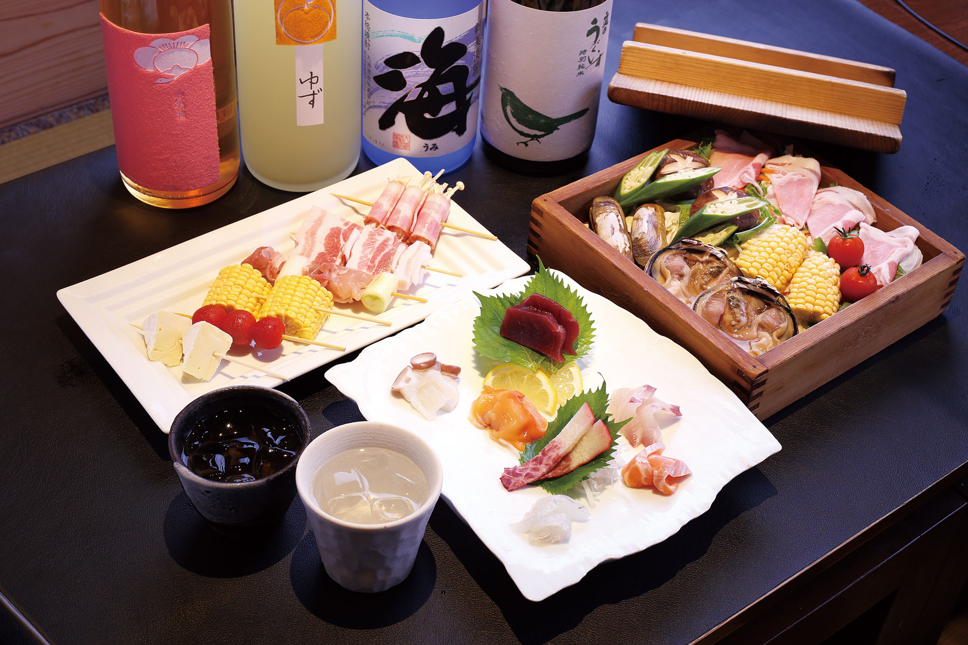 旬の食材を用いた串焼きや一品料理、毎朝仕入れる新鮮な魚介を使った料理、身体を芯から温めてくれる鍋料理など、バラエティー豊富なメニューを揃えてお待ちしております。
