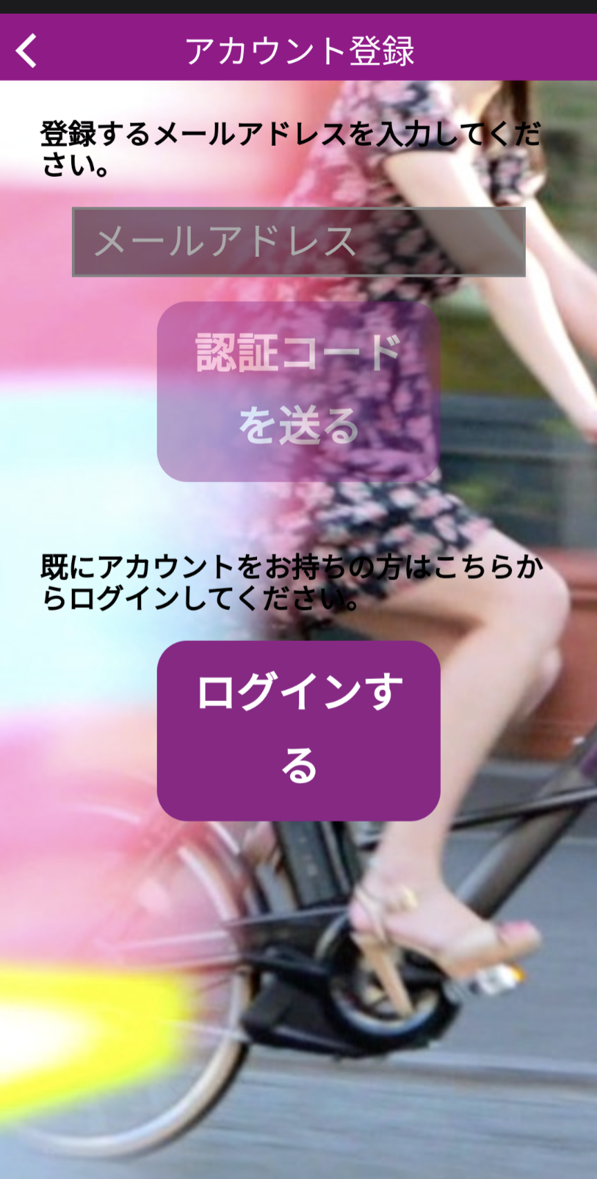 登録するメールアドレスを入力して認証コードを送るを押す。