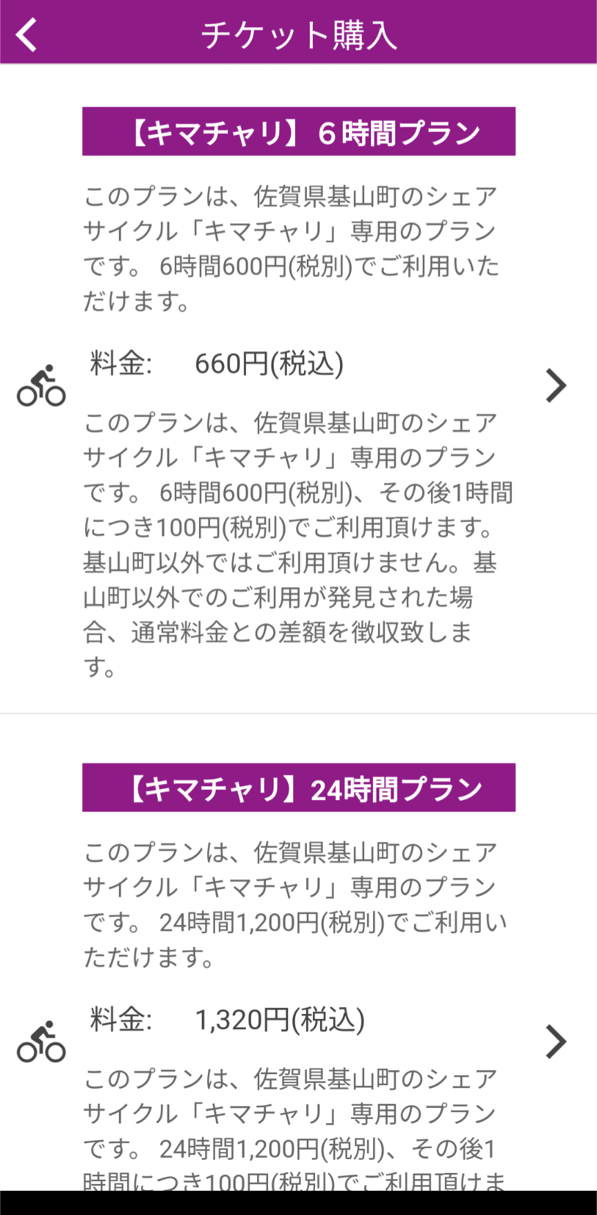 ※選択する前に自転車の充電の残量、タイヤの状態等をご確認お願いします。