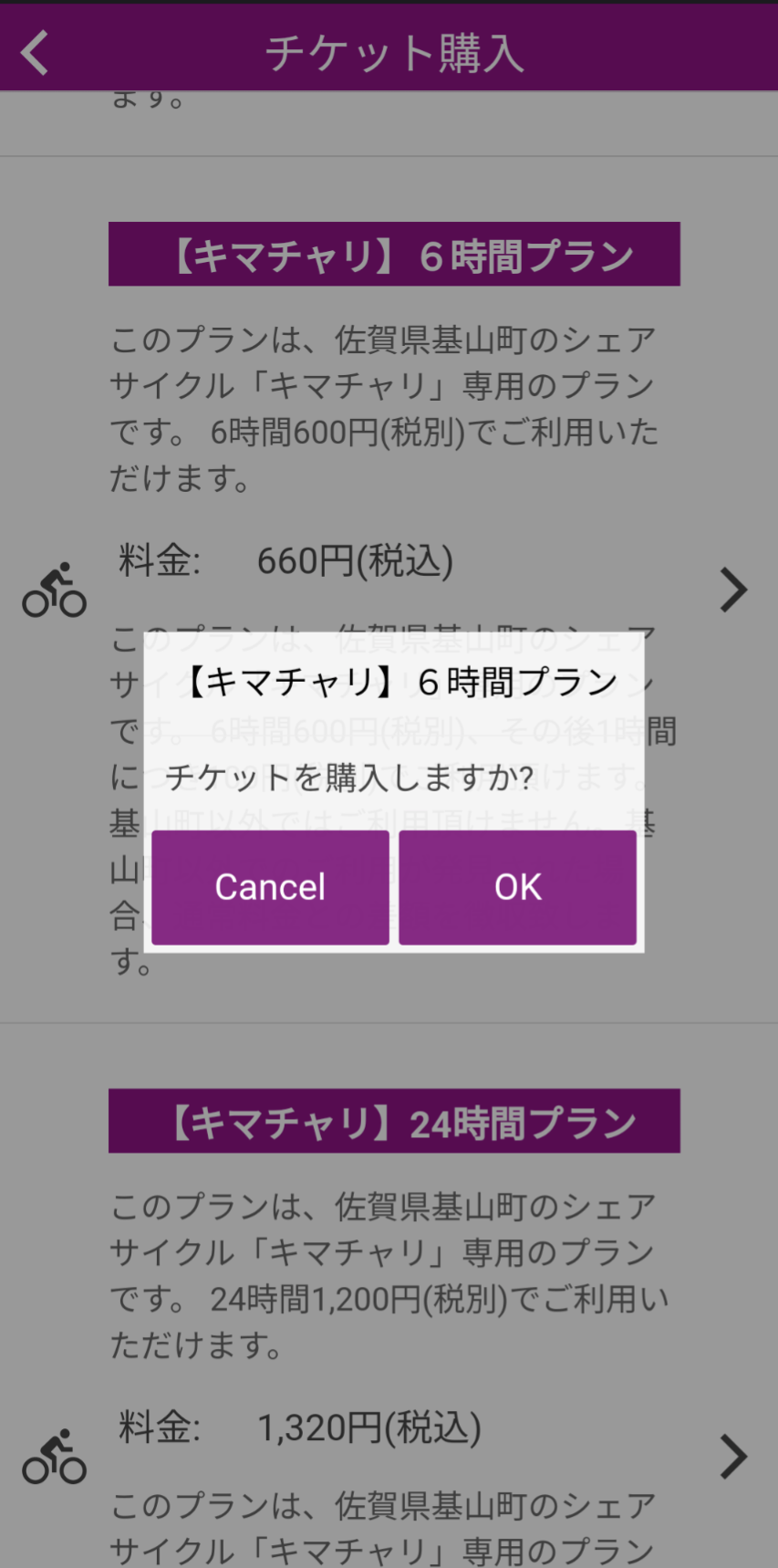 【キマチャリ】6時間プラン又は【キマチャリ】24時間プランがでてきましたら