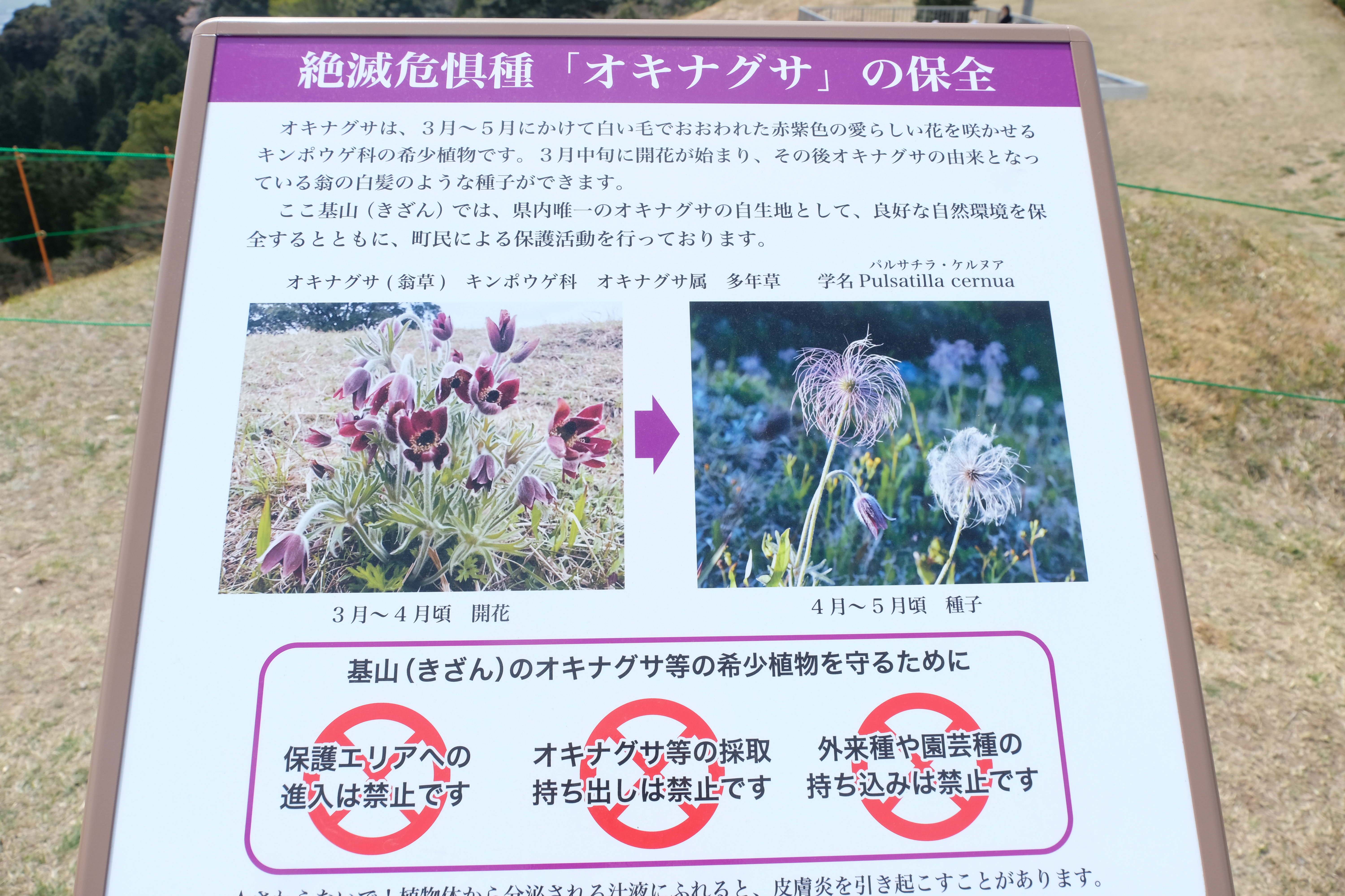 基山(きざん)山頂に咲く絶滅危惧種「オキナグサ」