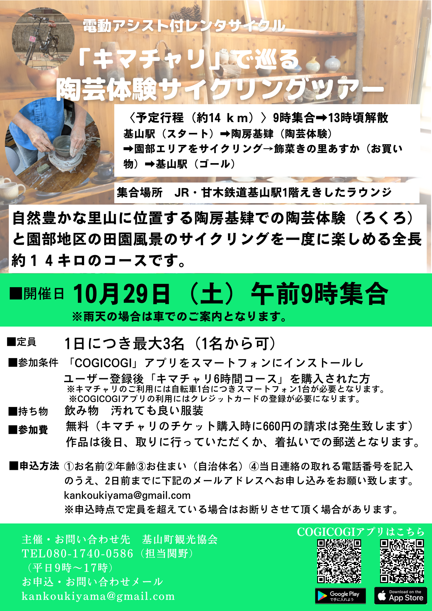 660円で陶芸体験ができる!【キマチャリ】で巡る陶芸体験サイクリングツアーのお知らせ