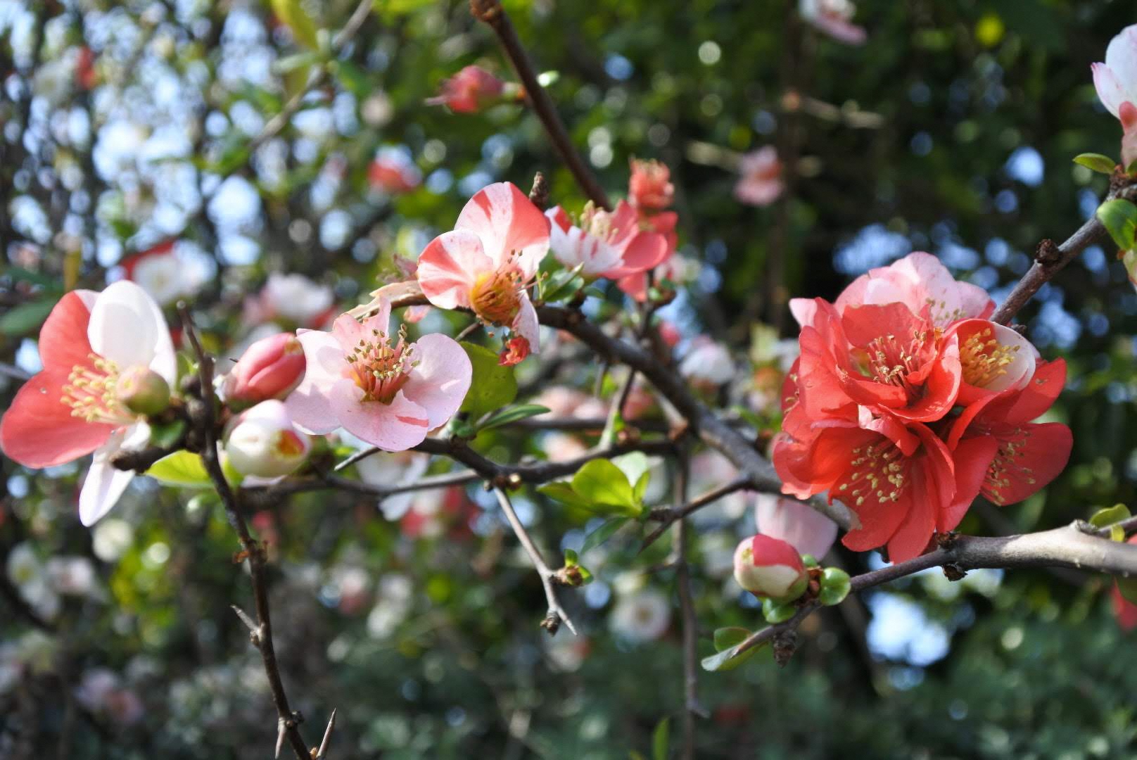 基山町役場のすぐ近くに、“高嶺錦”という品種のボケの花が咲いています!