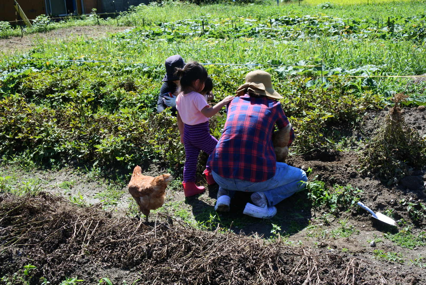 ともはぐ農園マスコットの鶏さんもお手伝い♪