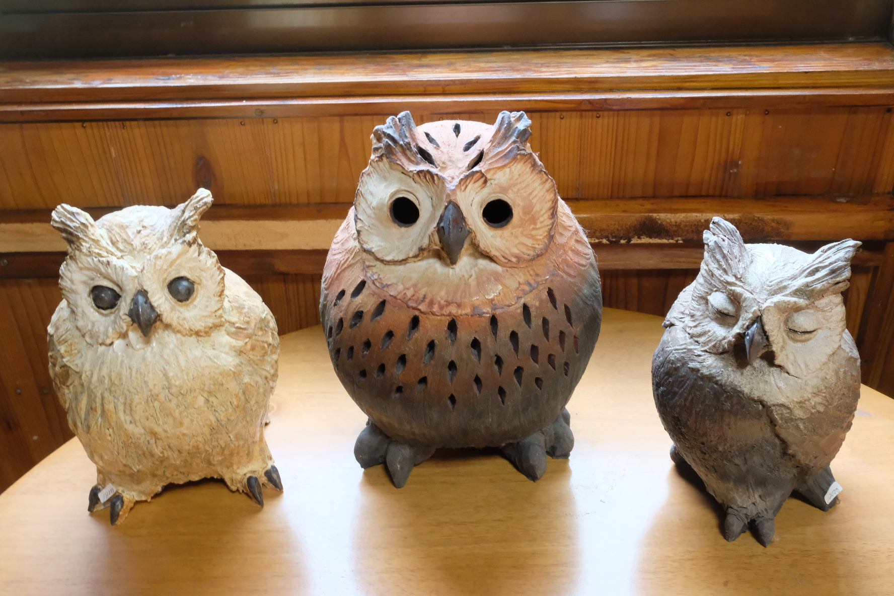 食器や花瓶だけではなく、フクロウやゴリラ等の動物の陶彫も特徴です。