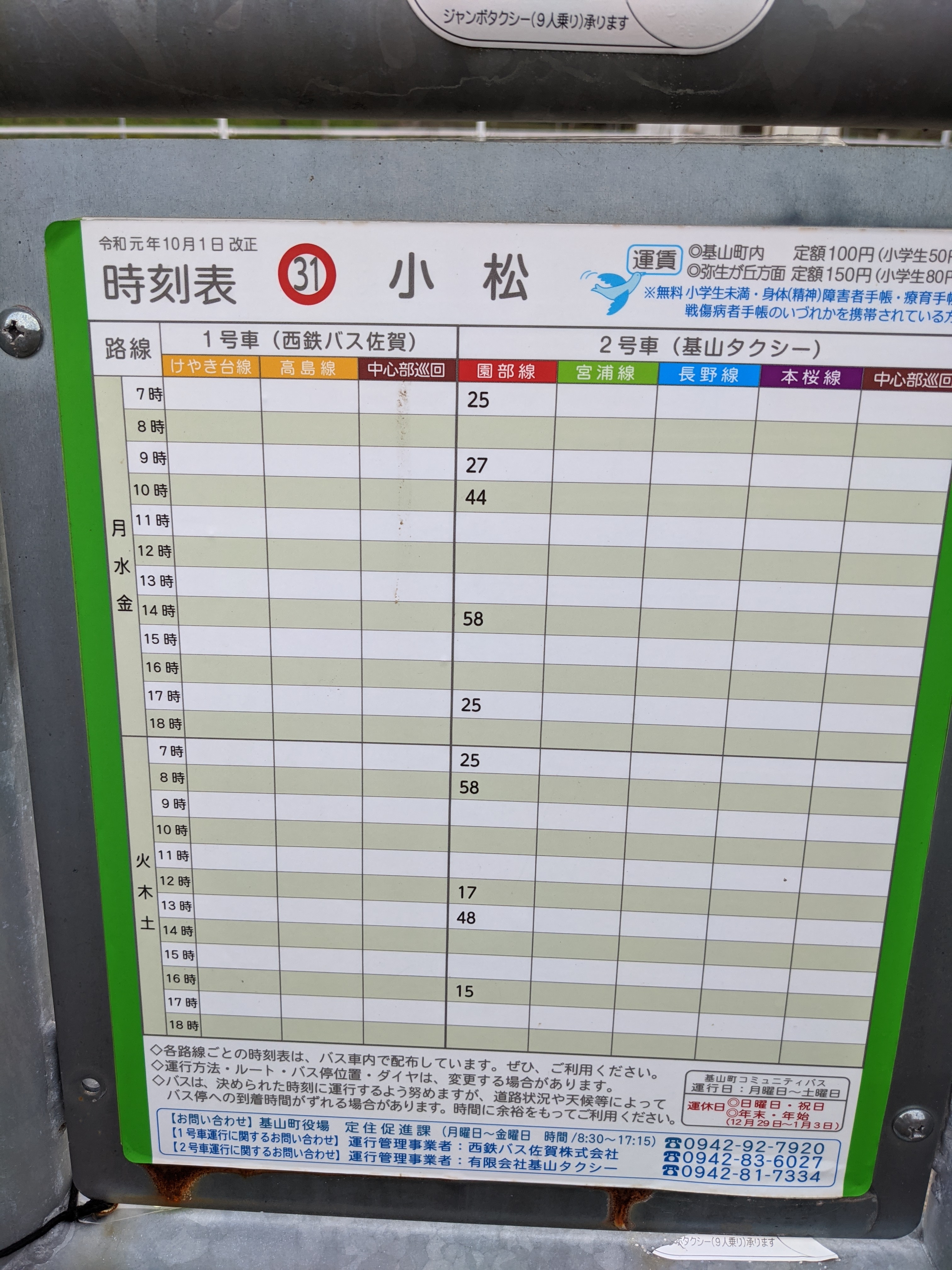 基山駅より2号車園部線【月・水・金運行】【火・木・土運行】の2ダイヤがあります。