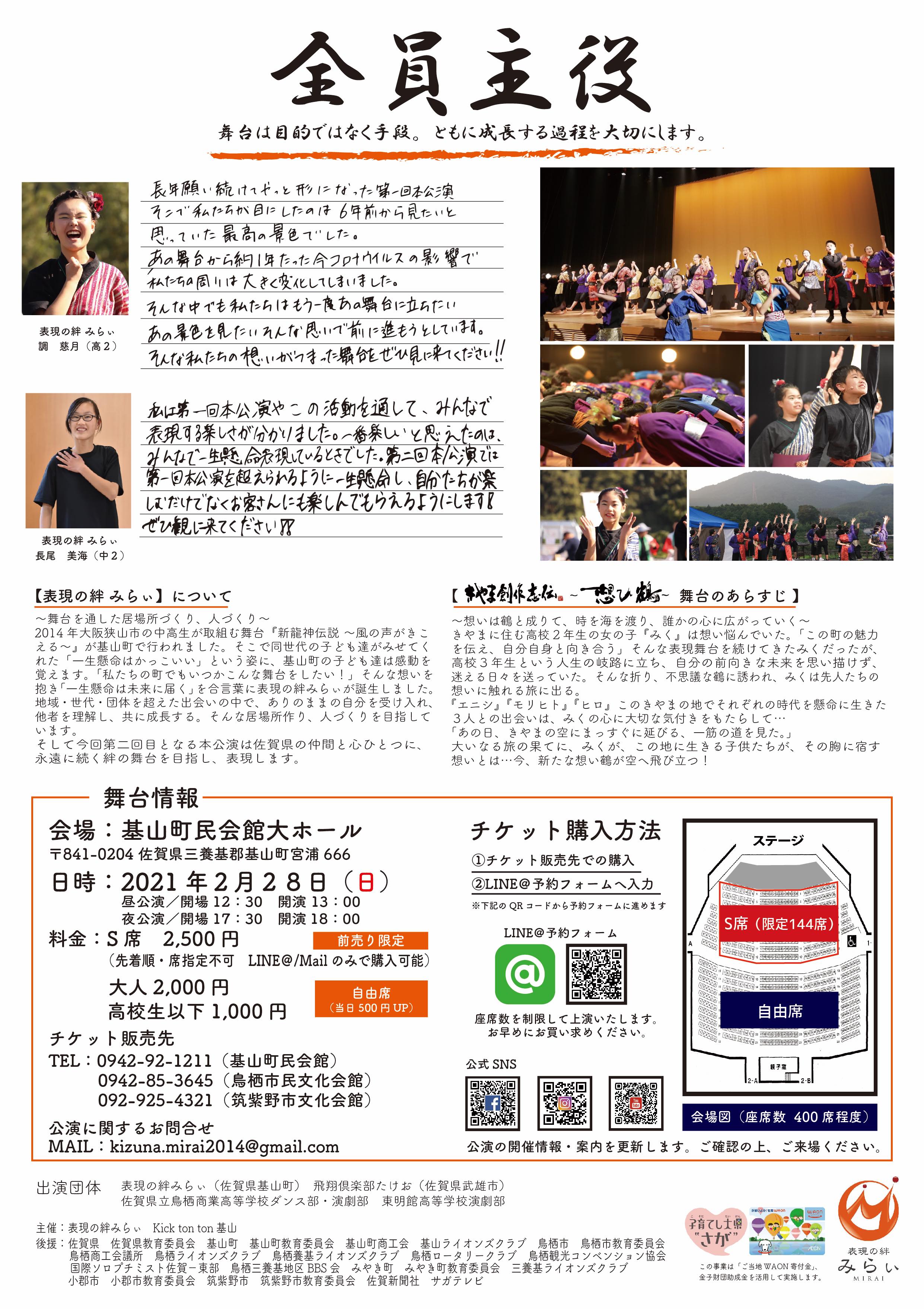 公演詳細 表現の絆みらぃ第2回本公演 【きやま創作志伝 〜想ひ鶴〜】