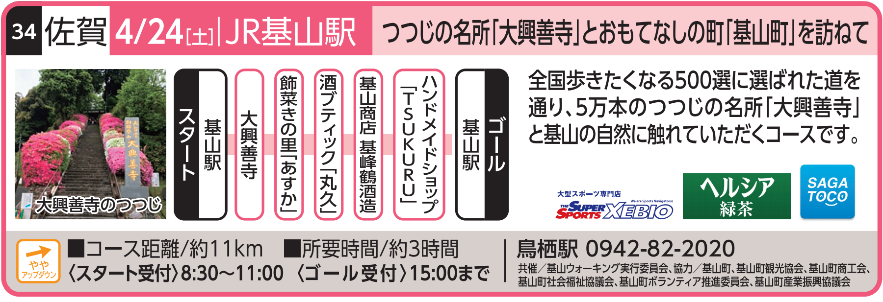 基山駅をスタートし、約5万本のつつじが名所の大興善寺を巡る約3時間・約11kmのコース