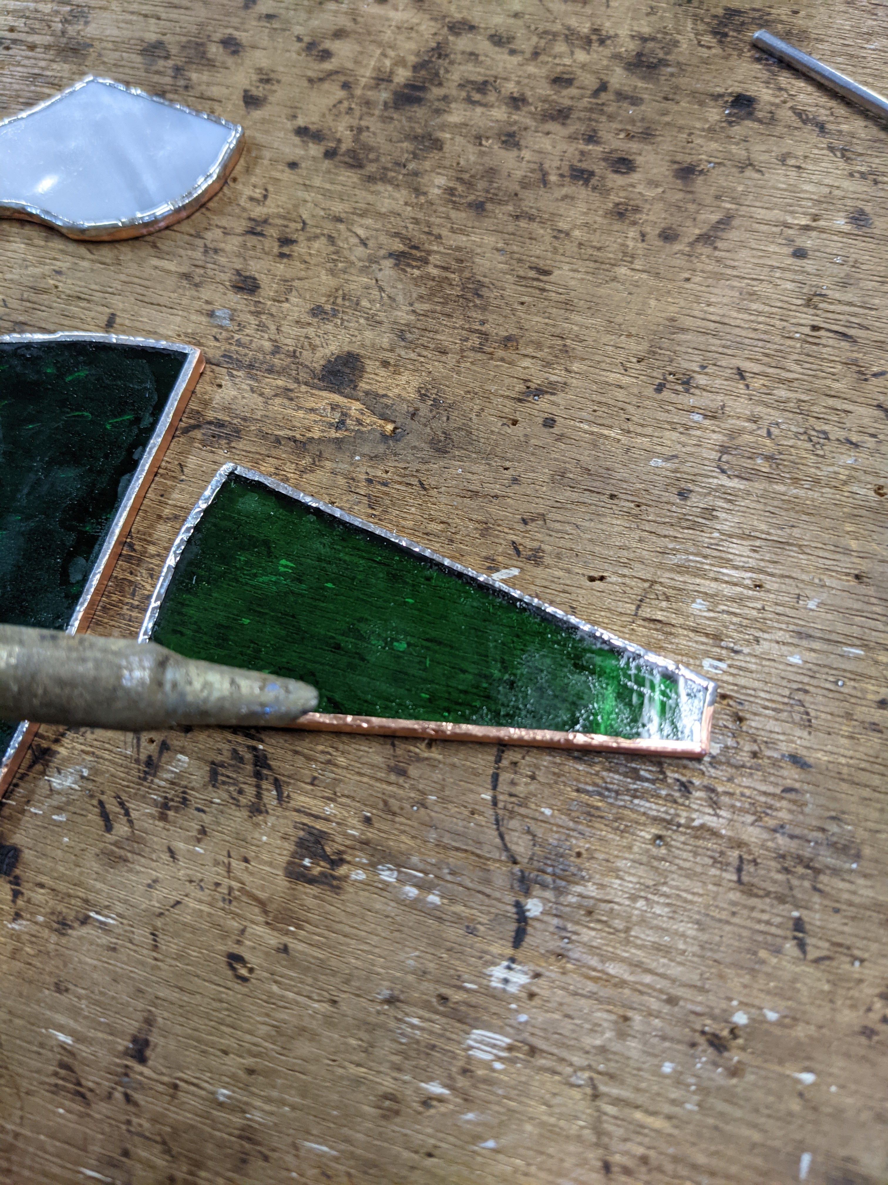 はんだこてを使用しステンドグラス同士をくっつけて