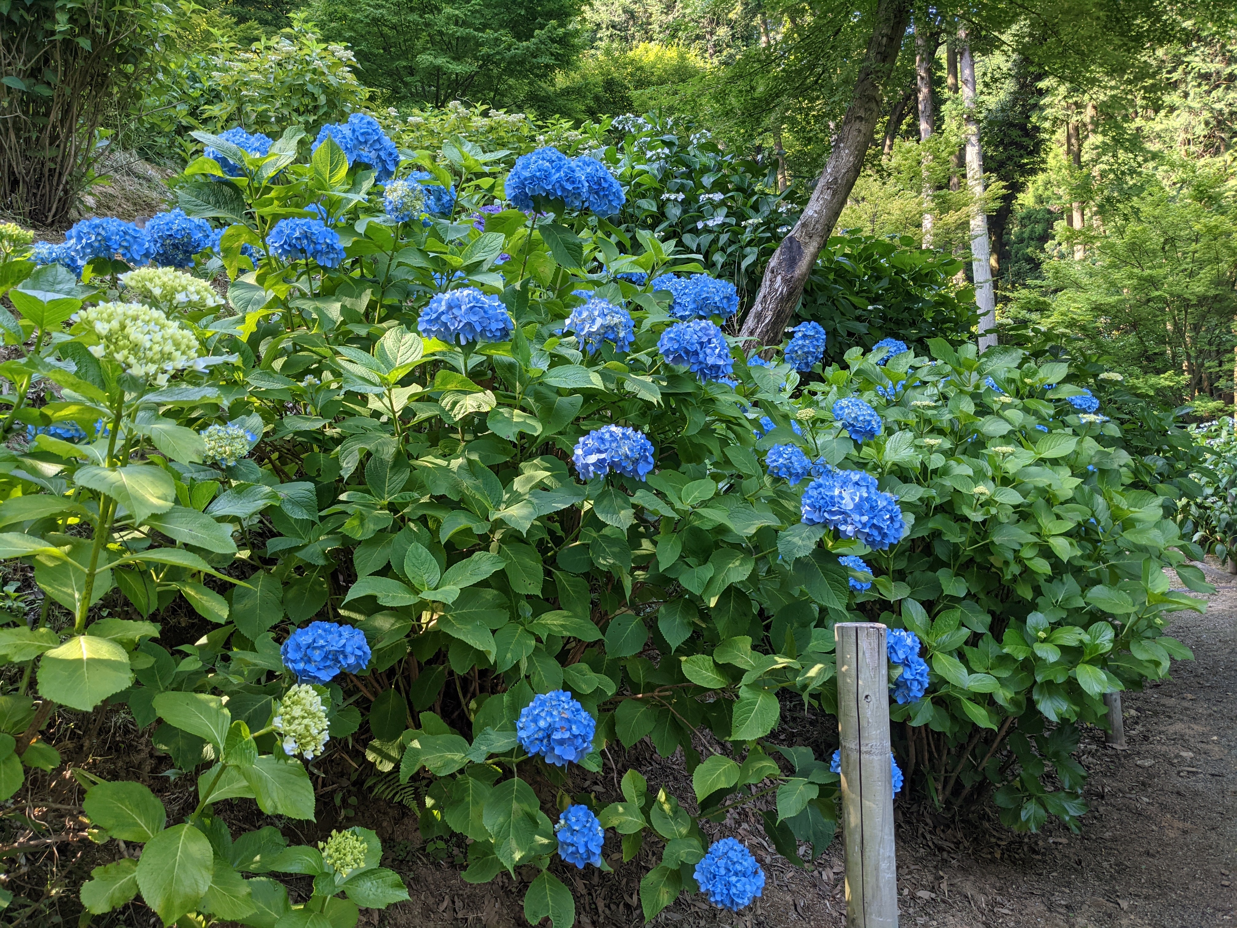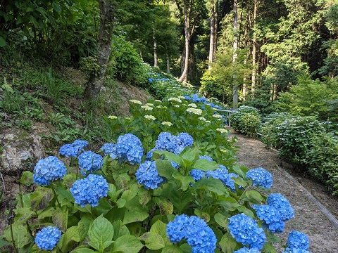 しばらく進むとあじさいが一面に咲き誇る「あじさい苑」にたどり着きます。