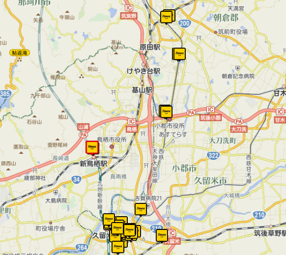 ※基山町に近いエリアでも鹿児島本線二日市駅、西鉄天神大牟田線三国が丘駅・小郡駅等に設置しています。
