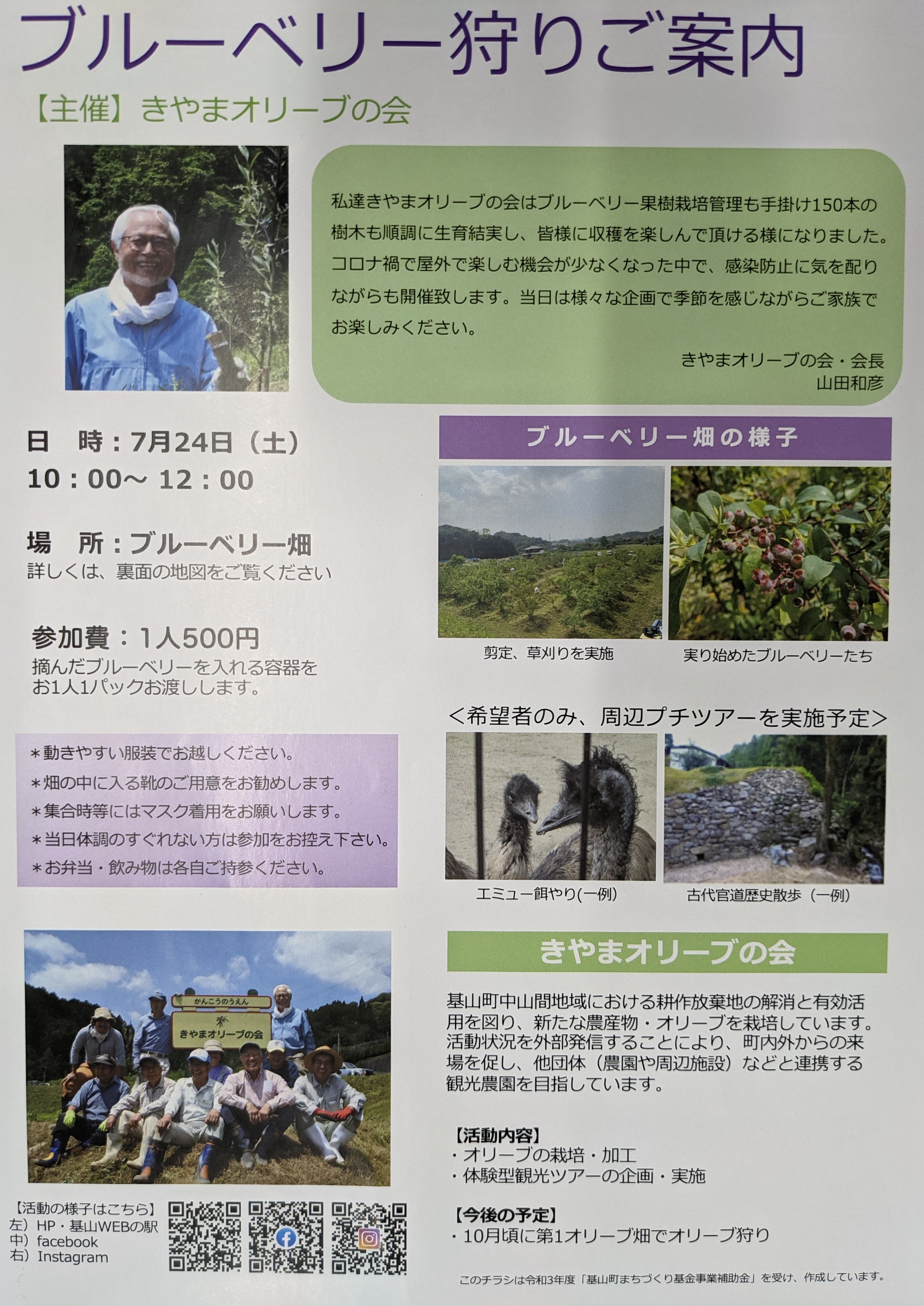 7月24日(土)開催 ブルーベリー狩りのご案内 【主催】きやまオリーブの会