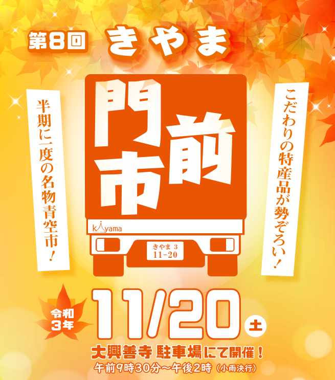 また同時開催で大興善寺大駐車場では門前市を開催します。