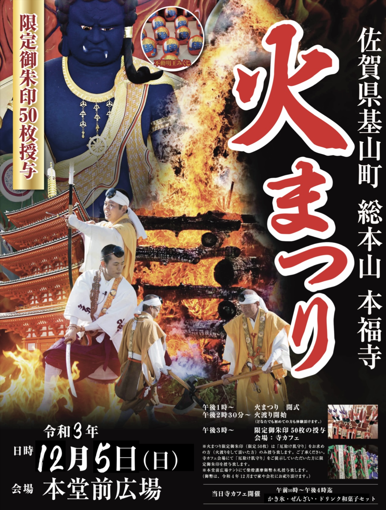 12月5日(日)に本福寺の本堂前広場で火まつりが開催されます。